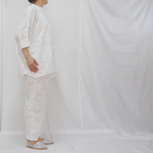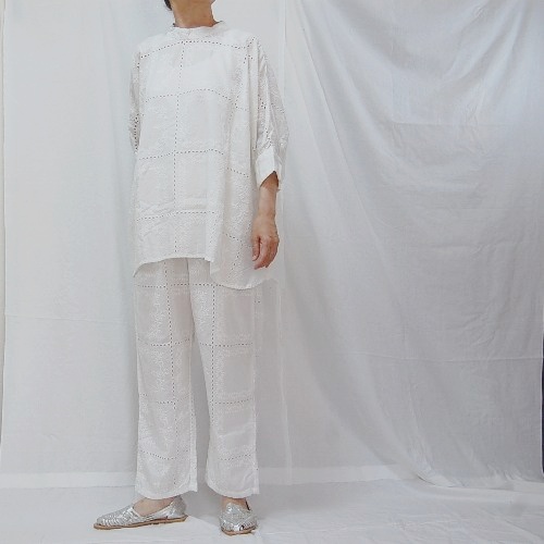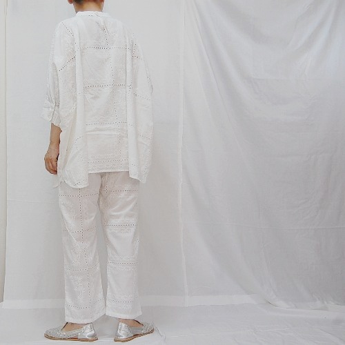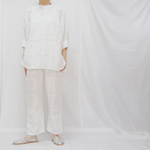 インド製アイレットレース生地のゆったりとしたシルエットのマラケシュブラウスです。