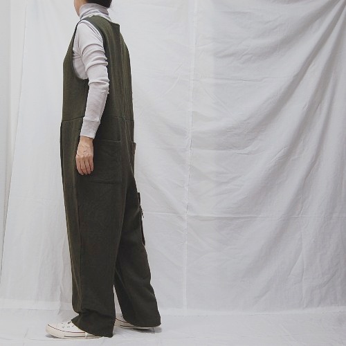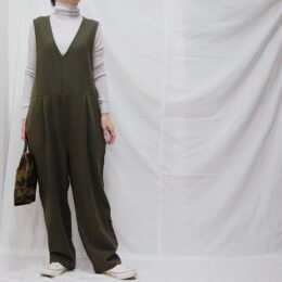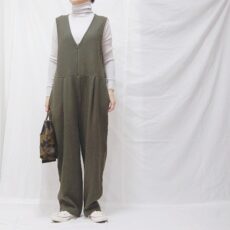 着脱しやすく、また軽さもあるので春先まで使えるサロペット。