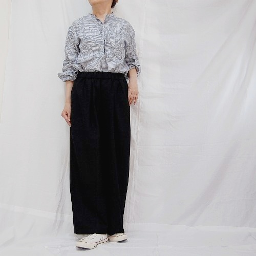 ネイビーと白の配色が落ち着いた印象で、季節問わず着用いただけるアイテムとなっています。