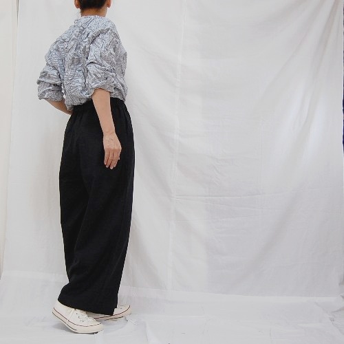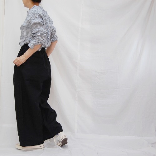 ※こちらのシワ加工は薬品などは使用していないため、繰り返しの洗濯やアイロンをあてる事でシワは伸びます。