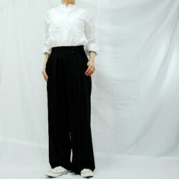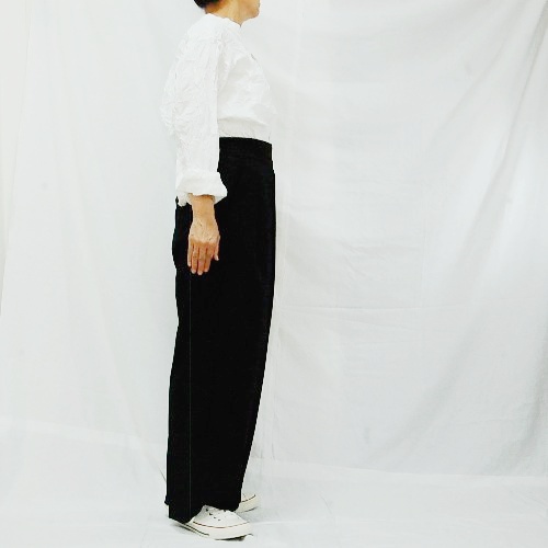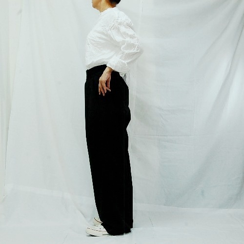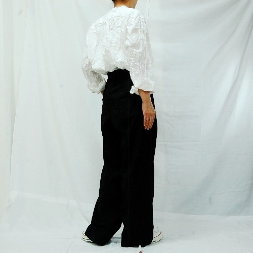 ※こちらのシワ加工は薬品などは使用していないため、繰り返しの洗濯やアイロンをあてる事でシワは伸びます。